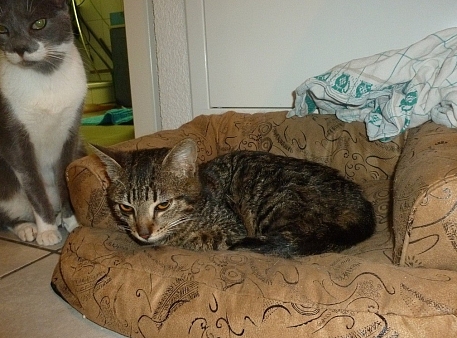 02.02.2013: Alada ist stark erkältet aus dem Tierheim auf die Pflegestelle umgezogen. Vermutlich ist ihm nicht bekommen dass er am gleichen Tag geimpft und kastriert wurde. Das hat seinem Immunsystem gar nicht gut getan. Zum Glück hat das Pfotenteam gemerkt dass der kleine Kerl nicht fit war. Leider wurde es auf derPflegestelle trotz intensiver Pflege und Versorgung nicht besser, so dass er nun schon länger Zeit stationär beim Tierarzt ist. Die Behandlung ist leider sehr kostenintensiv. Medikamente, stationärer Aufenthalt, Blutbild usw. kosten leider alles Geld. Durch den starken Schnupfen riecht er nichts, ausserdem hat er auch entzündete Mandeln was das Schlucken auch schmerzhaft macht. Im Moment kämpft er um sein junges Leben. Dabei ist er so ein verschmuster und anhänglicher Kater und würde doch viel lieber auf dem Schoss mit seinem Menschen schmusen. Zum Glück nehmen sich alle in der Praxis immer wieder etwas Zeit und schmusen mit ihm. Wir hoffen dass er bald auf die Pflegestelle zurück darf und es schaffen wird.