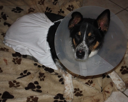 Und weil Balou anscheinend gerne in der Tierklinik ist, hat er sich einen Tag später trotz Kragen die Wunde in der Nacht aufgeknabbert, musste nochmals genäht werden.
