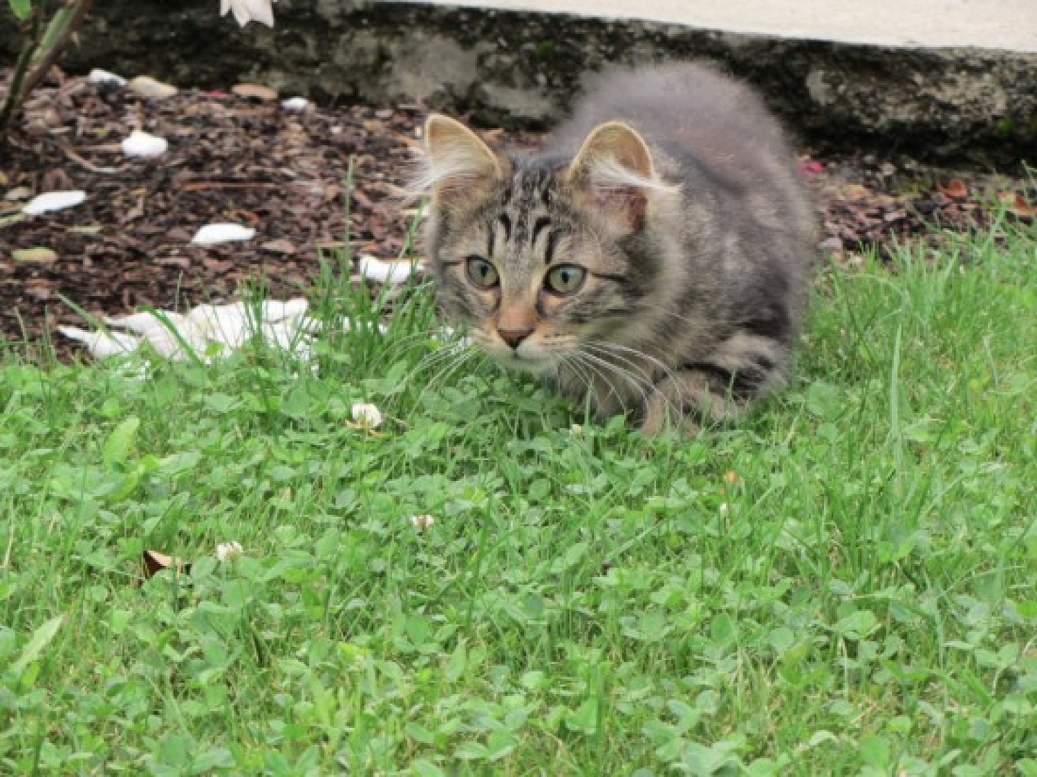 Anbei ein paar Momentaufnahmen nach dem Motto "Kimba auf der Pirsch" oder "sein erster kleiner Ausflug im Garten" (natürlich unter Aufsicht).