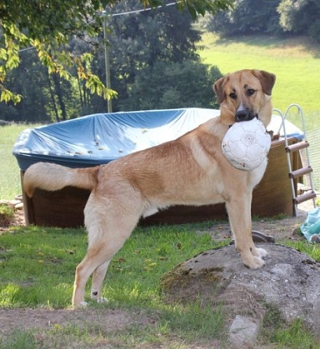 Er ist wirklich ein Hund für draussen doch wenn es heiss ist liebt er unsere kühle Küche mit dem Steinboden. Er liebt seine 2 Hundefreundinnen und ist schon ein wenig der "Hahn" im Korb. Er schützt sein Zuhause und mit seinem tiefen Gebell beeindruckt er ungebetene Gäste. Er hat den Jagdinstinkt im Blut doch das sind wir uns schon gewöhnt von unserem Wolfshund...so gedankenverloren