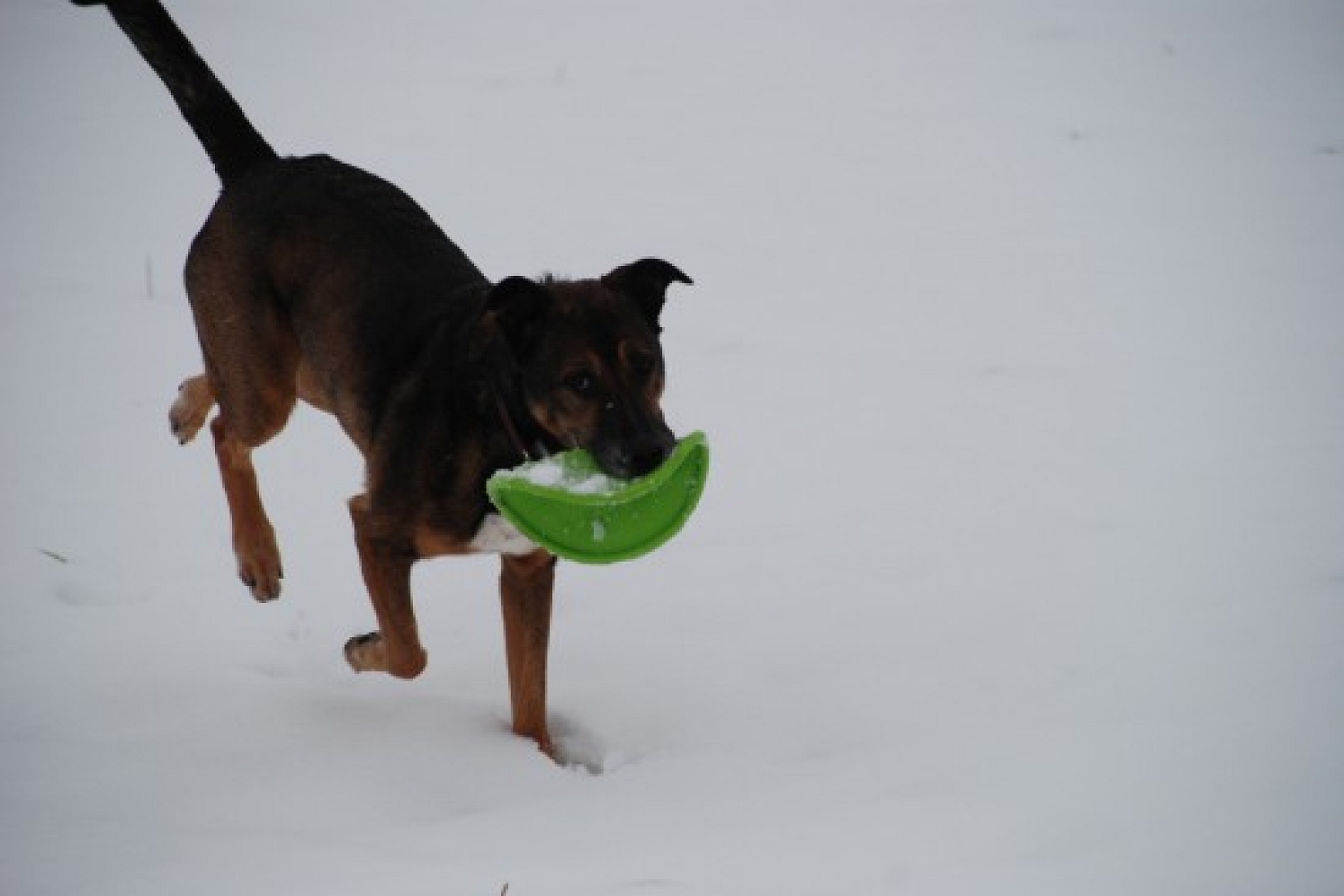 Während den Spaziergängen (wir wohnen ja in Mostindien) findet er auch im Schnee immer wieder einen Apfel der er dann mit Genuss frisst (es sieht dann so aus: suchen platz + essen, oh ups die sind ja schon weit gelaufen, rennen 10 meter vor uns, platz + essen....).