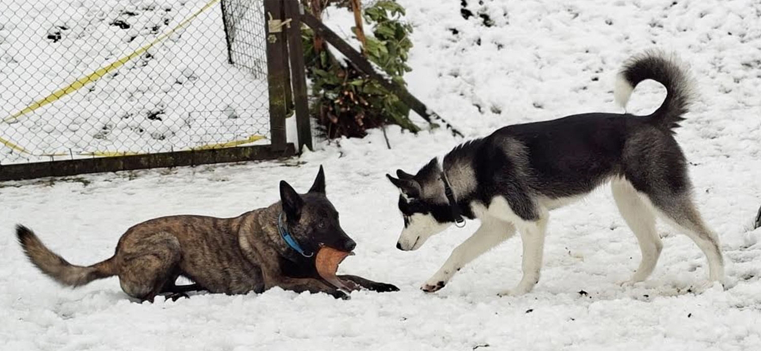 Shino neigt gegenüber anderen Hunden zur Ressourcenverteidigung was Futter und Spielzeuge betrifft. Mit dem richtigen Management ist das aber durchaus handelbar. Wir suchen für ihn ein hundeerfahrenes Zuhause, am liebsten natürlich mit Erfahrung mit nordischen Hunden.