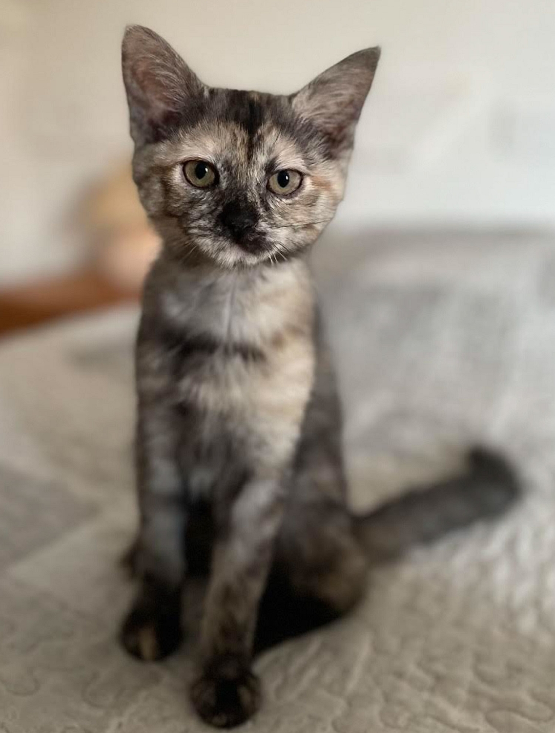 Derzeit spielt sie meist mit ihrer Schwester Dora. Die anderen Tiere im Haushalt sind drei erwachsene Katzen und drei Hunde. Sie kommt gut mit allen aus.
