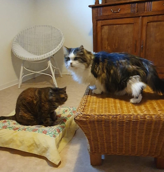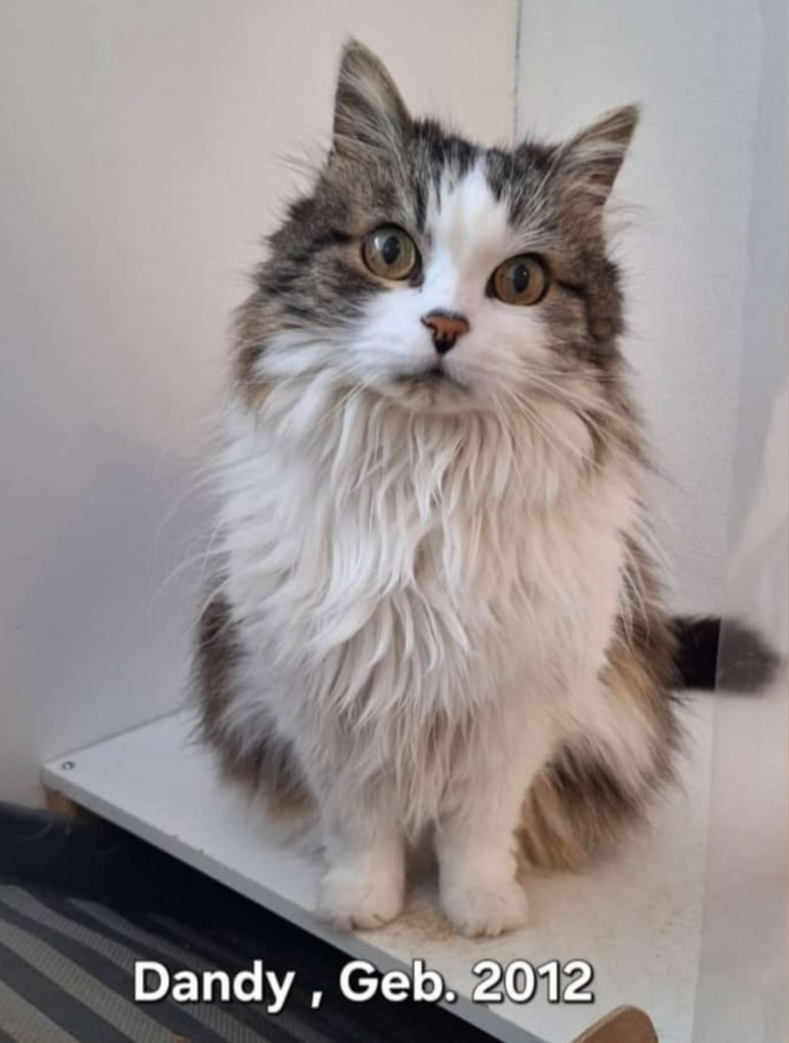 18. März 2026: Nach dem Tod seiner Besitzerin ist Dandy gemeinsam mit seiner 18-jährigen Katzenfreundin Roxane alleine zurück geblieben. Er wird von einer Nachbarin versorgt, doch in einer Woche wird das Haus verkauft bzw. müssen die Katzen dort weg.