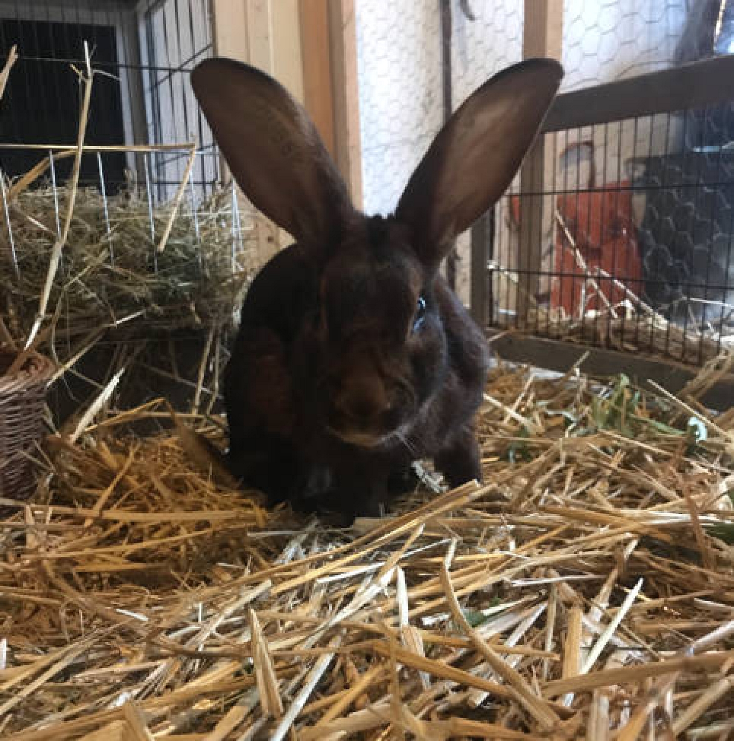 Mai 2020: "Darf ich mich vorstellen? Marc Uwe - ja, so heisse ich jetzt! Ich bin ein grosser Kerl, wiege 4,5 Kg und darum verdiene ich auch zwei Vornamen! Sehr wahrscheinlich gehöre ich zur Rasse der Hasenkaninchen. Ich sehe fast aus wie ein Hase, bin aber dennoch ein Kaninchen.
