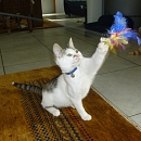 29.10.2013: Monty geht wieder prima und er sieht nun schon wieder ganz anders aus, als wir ihn seinerzeit bekommen haben. Monty läuft nun auf seiner Pflegestelle in einer grösseren Katzengruppe mit. Das tut ihm auch gut, weil er sich an den anderen Katzen orientieren kann. Das sollte auch in seinem neuen Zuhause gegeben sein. Monty wird niemals eine Schmusekatze werden. Er ist eher zurückhaltend und ängstlich. Mit der Spielangel jedoch kann man ihn schon etwas aus der Reserve locken, wie man auf den Bildern sehen kann. Weitere Informationen zu ihm werden folgen!