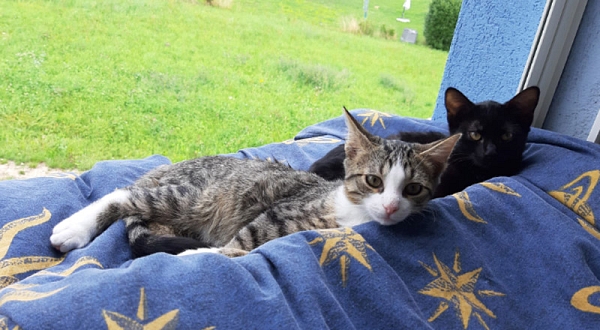 August 2019: Tiger Tom und seine Schwester Black Molly haben wir in einer abgelegenen Dorfscheune mit der Falle gefangen. Ihre verwilderte Mutter hat die Kitten dort geboren.