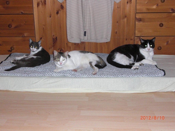 30.05.2012: Loyd hat sich toll auf seiner Pflegestelle eingelebt. Ein Leben ohne andere Katzen wäre für ihn nicht denkbar. Er wickelt alle um den Finger und orientiert sich sehr an den anderen Samtpfoten. Loyd erkundet langsam das ganze Haus, lässt sich streicheln und sogar auf den Arm nehmen! Das hätte keiner Gedacht. Natürlich hat er in manchen Situationen immernoch Angst, aber mit Geduld sollte auch das kein Problem sein.